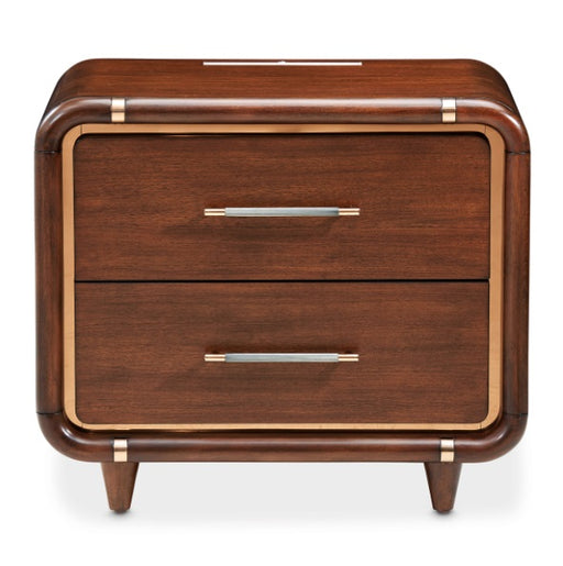 AICO Furniture Portrait Large Nightstand with LED Lights in Sienna Brown