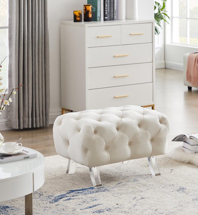 Crescent Cream Velvet Ottoman