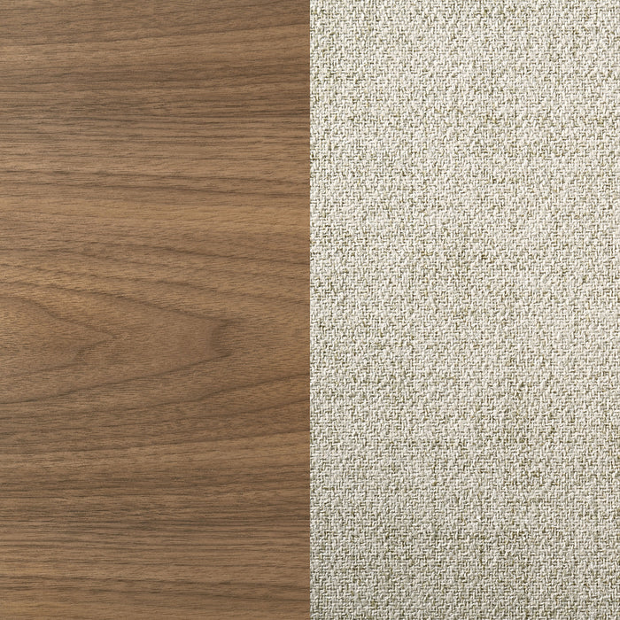 Accentuate the inviting style of your kitchen or dining room with a modern rectangular dining set. It offers fresh, contemporary flair with a walnut wood grain finish paired with beige upholstery on its chairs. The table features a trestle base and round post legs, offering casual ambiance for a welcoming home. Chairs are designed with wooden back and wedge details that add movement and character. Foam seat cushions are upholstered in beige fabric, offering neutral contrast and providing exceptional comfort and support for delicious meals.