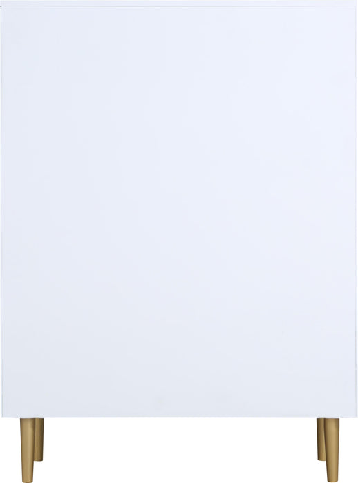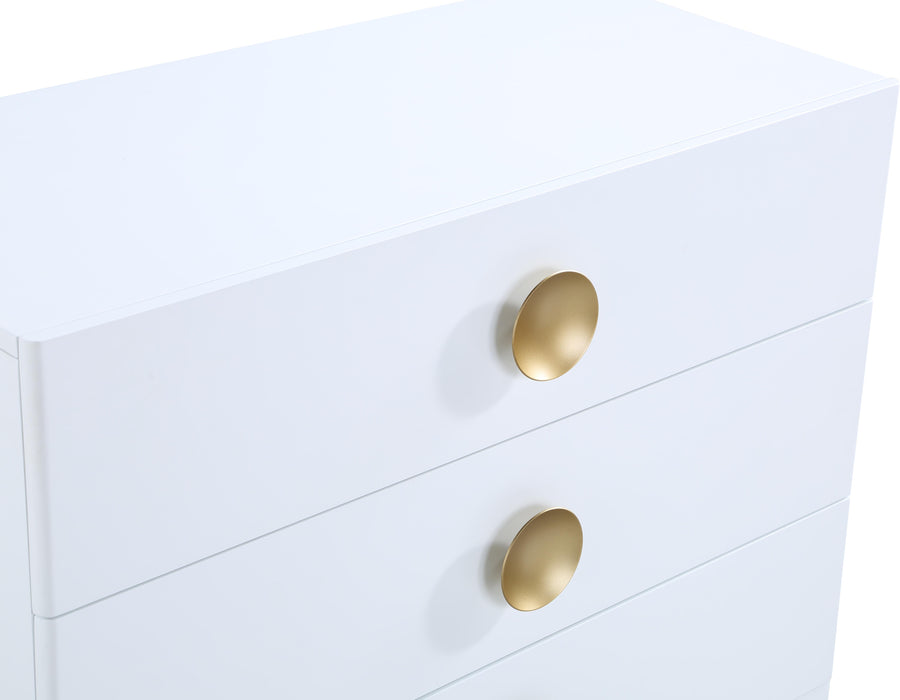 Watch your d?�cor cascade to new heights when you bring home this Zayne chest. It features a rich white finish that sets an instant contemporary vibe in your space. Its brushed gold metal legs and handle add a sophisticated slant to the piece���s design, ensuring it���s a simple and easy fit with other modern pieces. Pair this unit with other items in the Zayne collection for a seamless presentation in your room.