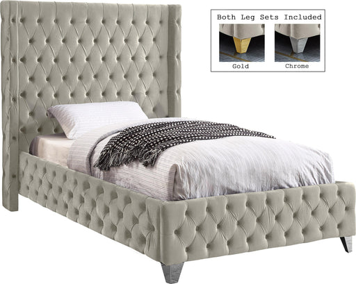 Zara Cream Velvet Twin Bed (3 Boxes)