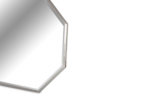 Silverlake Village Collection by AICO Furniture Washed Oak finish Octagonal mirror frame is made with stainless steel in a brushed nickel finish ...