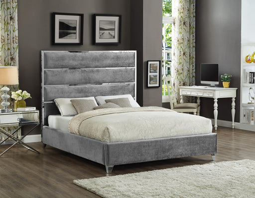 Zara Grey Velvet Queen Bed (3 Boxes)