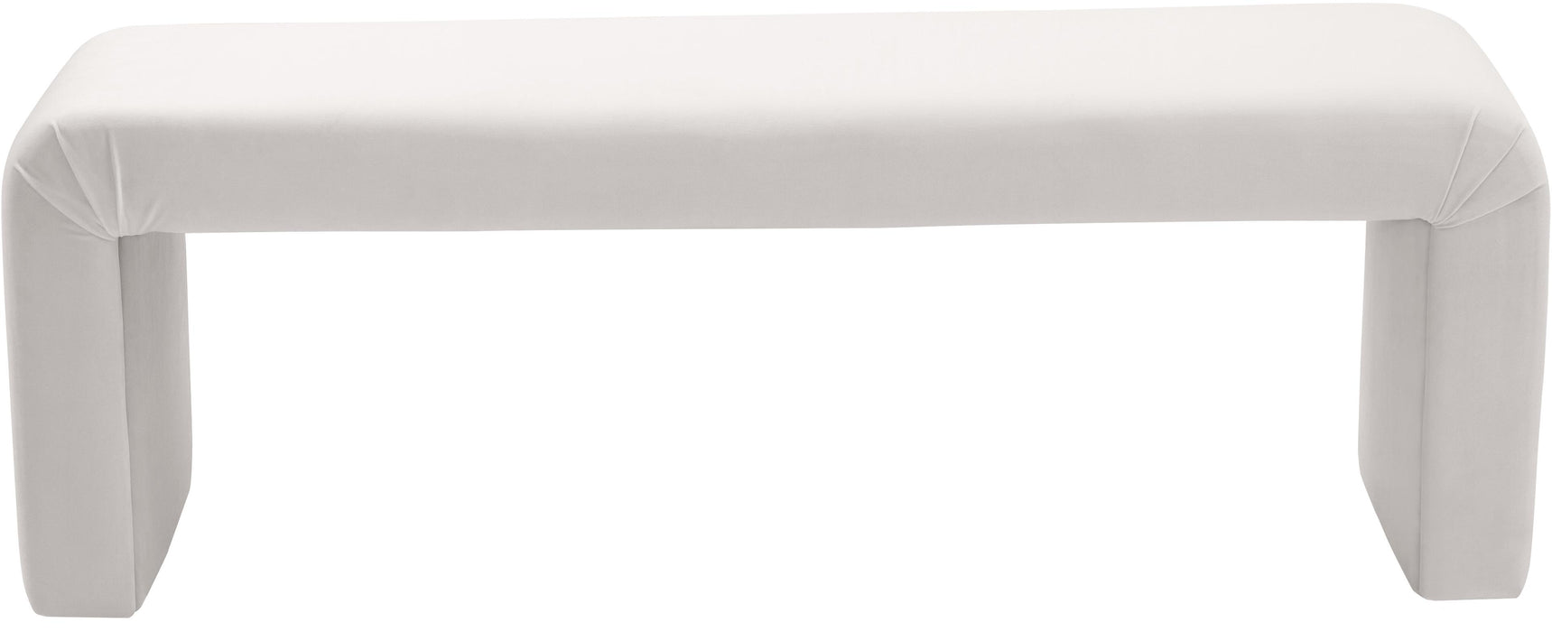 Bring a stunningly contemporary look to your space with this Minimalist velvet bench. This eye-grabbing bench gives you an ideal spot to sit while you pull on your boots or as an extra seat on family game night. Covered in soft cream velvet material all over, this bench is bound to impress guests from all angles, from the mudroom to the foot of your bed in the master suite.