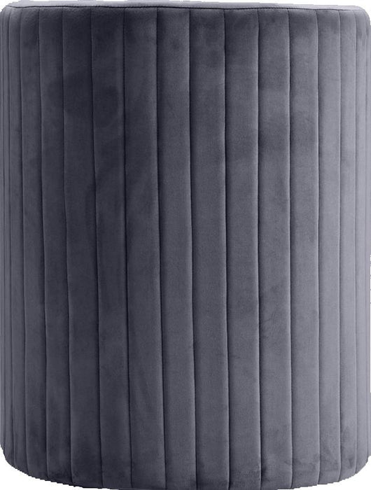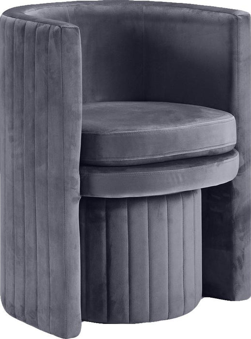 Create a chic atmosphere with this Selena Grey Velvet Accent Chair. This handsome chair has a fun barrel design that lends contemporary charm to a bedroom, living room or sitting room. The chair and matching included ottoman are covered top to bottom in plush velvet for a sumptuous look. Channel tufting adds a visually exciting finish to this elegant pair.