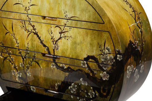 Illusions Collection by Aico Furniture Hand-painted frame Floral theme Glossy lacquer Multi-coloured 4 Large drawers Round wooden frame