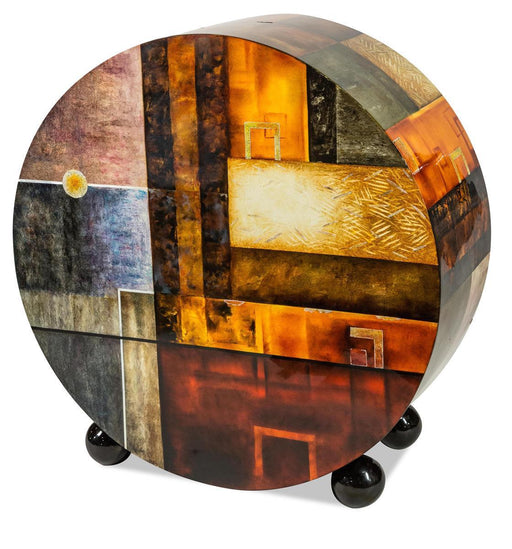 Illusions Collection by Aico Furniture Hand-painted frame Glossy lacquer Multi-coloured 4 Large drawers Round wooden frame