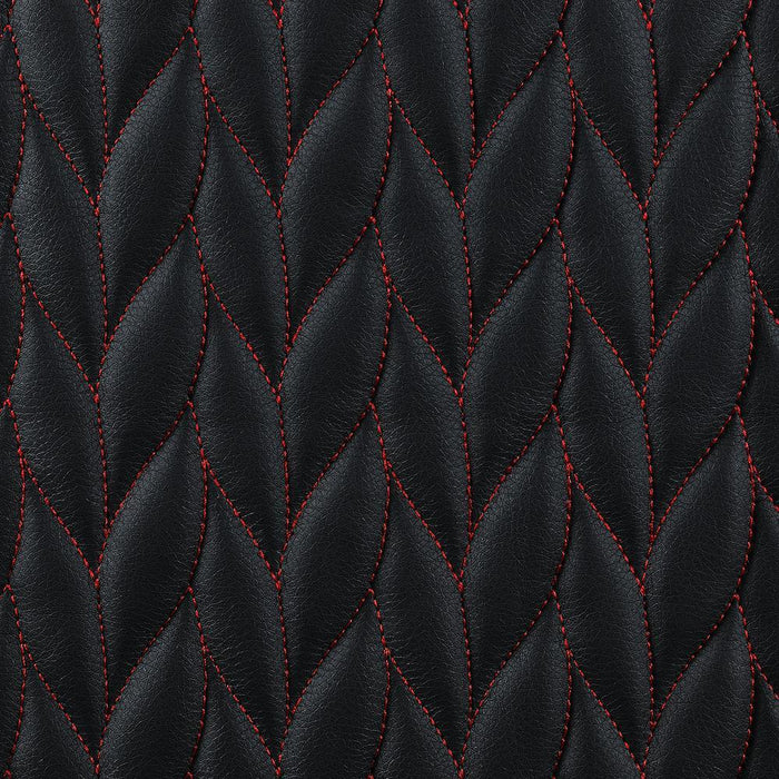 Perfect for a modern home office, this contemporary office chair is wrapped in a black leatherette that offers a bold statement piece. Accenting the black leatherette is a botanical-inspired herringbone pattern with a red stitching details, giving a subtle pop of color. Rounded padded arms provide a place to rest your elbows, while a padded headrest and seat offer long-lasting all-day support. Mounted to a rolling base with five wheels, this mobile office chair easily glides throughout the office space to retrieve items and more. In addition, this office chair can be adjusted, lifted to fit your preferable desk height.