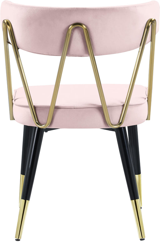 Seat dinner guests in elegant style with the Roberto pink velvet dining chair from Meridian Furniture. This fabulous chair features a rounded back ...
