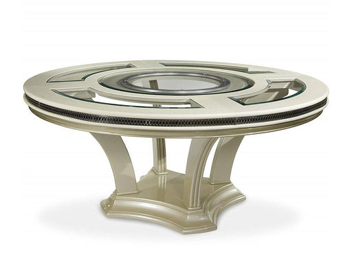 Hollywood Swank Round Dining Table in Pearl Caviar