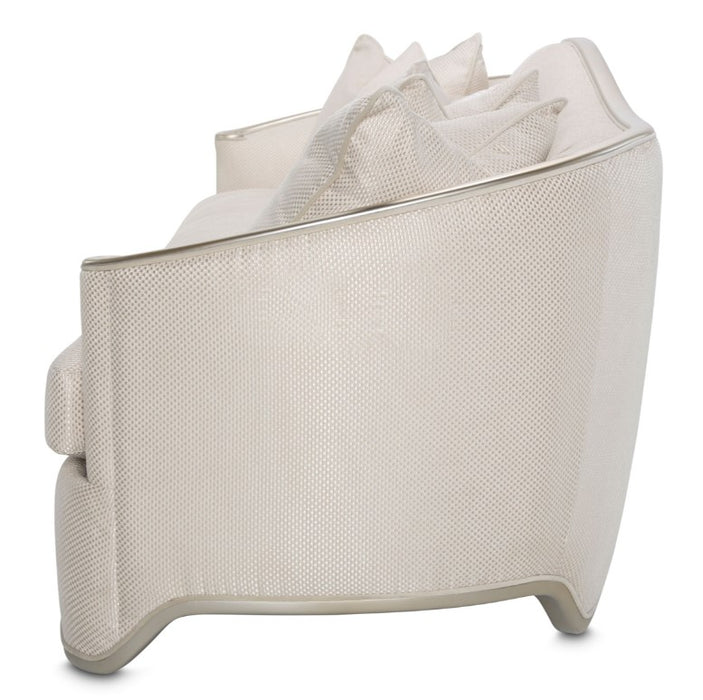Aico London Place Sofa in Light Champagne. Style with elegance and sophistication. London Place features rich neutrals, eclectic designs, and clean, sloping shapes in champagne tones. Made for the contemporary mind, delivered with European clat.
