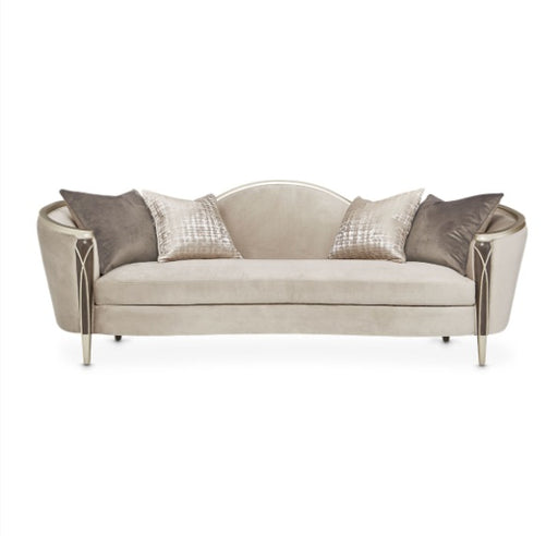 This sofa has an alluring look that's guaranteed to turn heads. Richly textured fabric in a light, easygoing hue is enhanced by even lighter flax p...