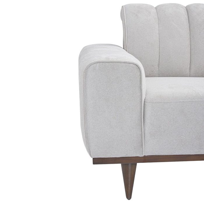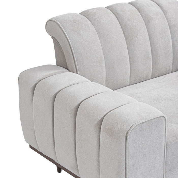 AICO Balboa Chair And A Half in Warm Walnut LFR-BLBA838-SHL-218. The sophisticated design of the stylish Balboa sofa and chairs has been brought to life using a beautiful light taupe chenille. Perfect for the family room to curl up with a book or watch your favorite movie. A wonderful blend of luxury style and functionality, a simple movement the sofa back adjusts to create a comfortable sleeping space for an overnight guest.