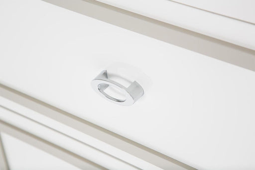 London Place Collection by AICO Furniture Case body made with a Creamy Pearl finish Trim, feet, and drawer pulls are platinum finished Drawers a...