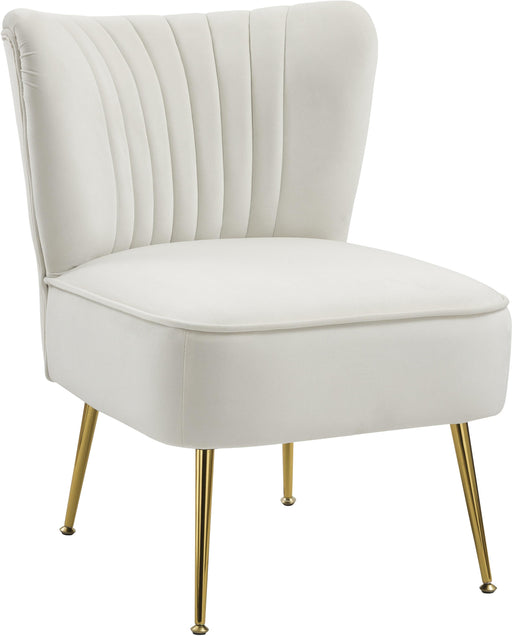 Bring home this Tess velvet accent chair to give them something to talk about. This handsome chair will be the talk of the town with its soft cream...
