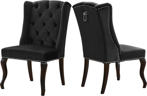 Bring luxury to mealtime with the Suri Black Velvet Dining Chair. This chair has a curvy, high back with an elegant look that blends modern with tr...