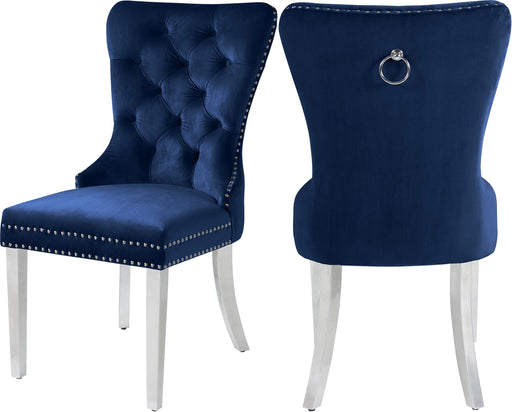 Belle Navy Velvet Dining Chair - Soft Navy Velvet - Curved Channel Tufted Back - Upholstered Leg with Gold Tip - Contemporary Design