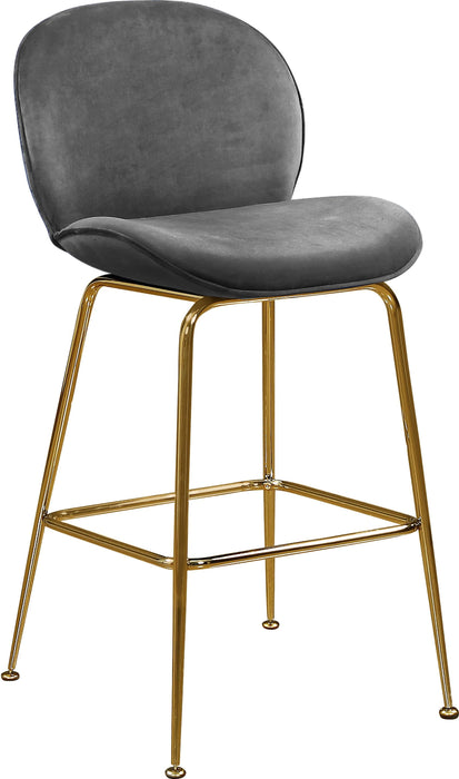 Rev up the wow factor in your space with this Paris Grey Velvet Counter Height Stool. The rounded back and minimalist frame lend it a modish feel, and the velvet upholstery is sleek to the touch, adding a comfortable edge to your home bar. The polished gold metal frame lends it a luxe feel, and the counter height makes it ideal for your kitchen counter if desired. A foot rail along the front adds stability to the stool while also giving you a place to rest your feet.